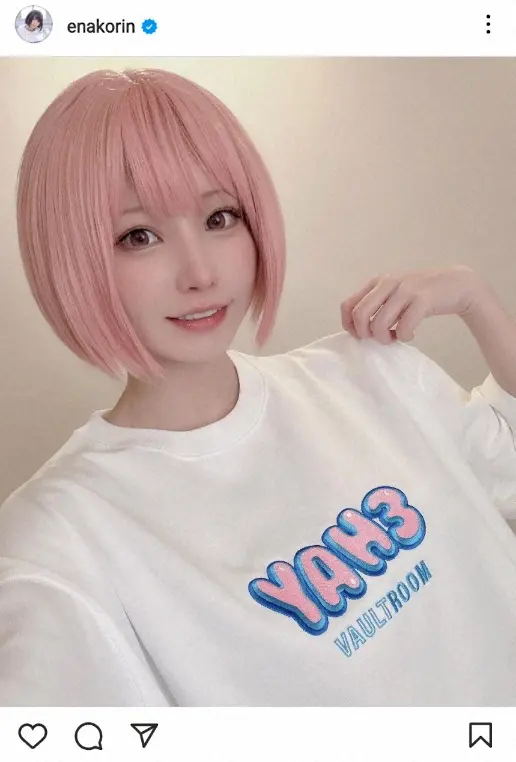 人気コスプレイヤーえなこ(29)が1日、自身のインスタグラムを更新。ピンクヘア姿を披露した。