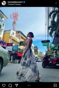 「タイにロケで来てます 街歩くだけで楽しい 目が合うとニコってしてくれて 人もあったかい国」とつづり、大胆に背中を露出にしたロングワンピース姿の写真などをアップした。