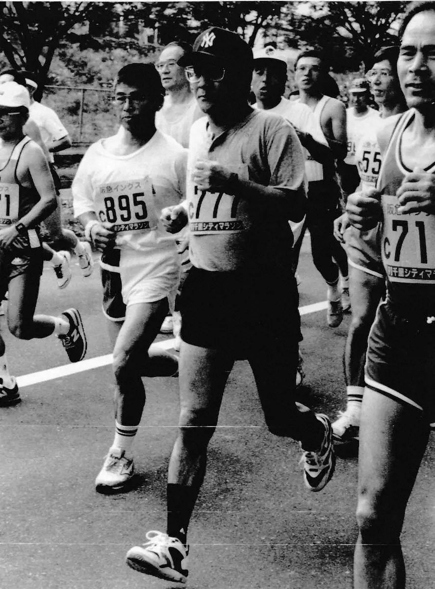▽マラソン 48歳で突如マラソンを始める。91年ホノルルマラソンでフルマラソンに初挑戦。大石内蔵助の討ち入りスタイルで6時間3分31秒。94年にはリレハンメル五輪で聖火ランナーを務める。