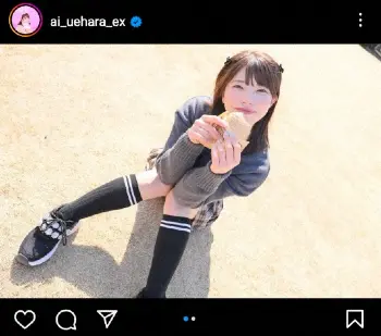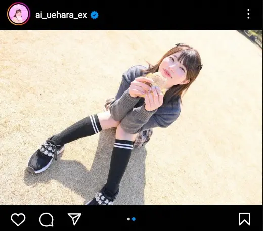 上原亜衣 ミニの制服での体育座りショット披露に「可愛い!」「デートしてるみたい」