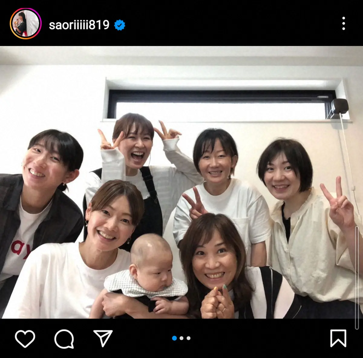 木村さんは「みんなでテンさんのお家に大集合。楽しすぎて一瞬だったな~」と投稿し写真をアップ。バレーボール元女子日本代表でともに戦った「テンさん」こと竹下佳江さん(45)の家を、3カ月になった長男と訪れたことを報告した。