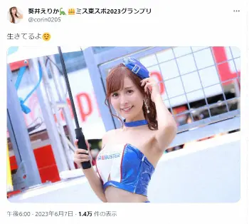 直前の投稿では「生きてるよ」というコメントとともに、レースクイーンス姿のショットを投稿した。