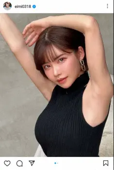 「今日のえいみの脇です!」とつづり、黒のノースリーブのトップス姿で両腕を上げている写真をアップした。