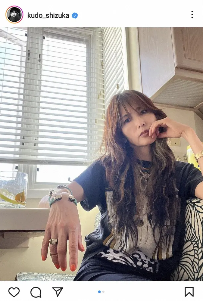 工藤静香「うねうね」「天パーと言うより、年パー。笑」ナチュラルショットに「かっこよくてお似合い」の声