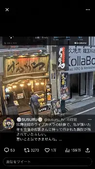 そして9日にSUSURUは「歌舞伎町のライブカメラの映像で、私が置いた傘を食後のお客さんに持って行かれた瞬間が残されていたらしい」と驚きの報告。「悪いことはできませんね。次やったら◯ロスゾー!」とツイートしていた。