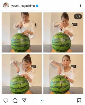 永島アナは「果物インストラクター」「オーガニックフルーツソムリエ」の資格を持っているが、一番好きなのはスイカと明かし、「スイカが旬!ということで今年も入刀式を執り行いました」と大きなスイカを切る写真を投稿した。