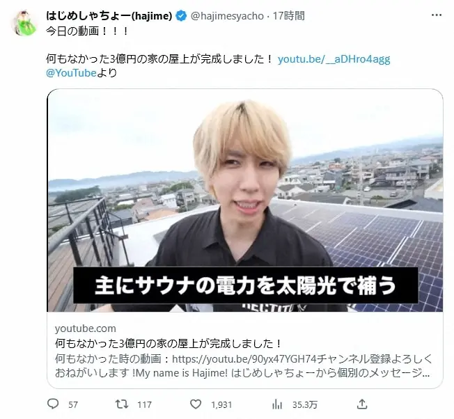 はじめしゃちょー はじめしゃちょー「マジで最強だと思う!」“3億豪邸”が改造しまくりで“4億… ギャラリーで見る この記事のフォト 2023年06月10日の画像一覧 もっと見る 2023年06月10日の画像をもっと見る