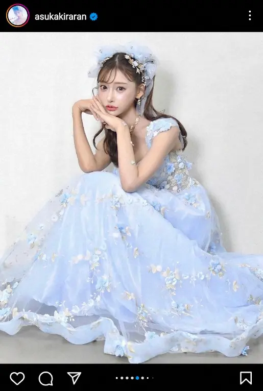 明日花キララ 水色のドレス姿披露に「天使みたい」「リアルお姫様ですね」「可愛いの頂点」