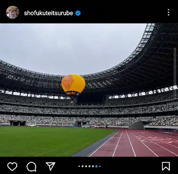 同製品のCMキャラクターを務めて25年目となる鶴瓶は「伊藤園のむぎ茶がなんと25年、ギネスに認定されました、すごい」とつづり、新国立競技場を訪れ、観客席に向かって両手を上げて喜ぶ様子をアップ。さらに、自らの顔がプリントされた巨大気球が競技場内に浮かぶ様子も投稿した。