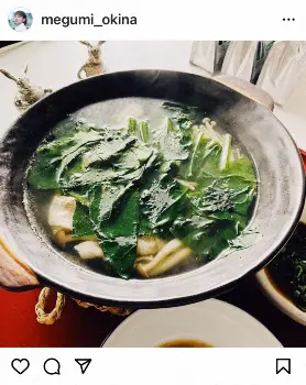 さらに「とんでもなく美味しいお鍋を作ってくれて心まで温まりました」と鍋の写真をアップ。「しっかり食べて、よく眠り、体力をつけたいと思います」とつづった。