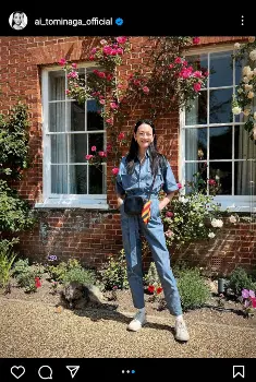 冨永は「イギリスの晴天につられて、ブルーが多めのコーディネートだったな clear and blue」と投稿。頭にサングラスを乗せ、黒のキャミソールワンピース風の服に鮮やかな青色のシャツを羽織って露店を物色する様子をアップ。さらに青色の全身デニムにワンポイントの3色スカーフが映えるコーディネートも披露した。