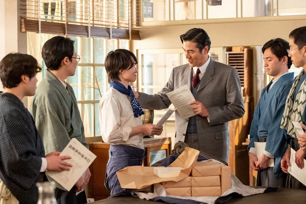 連続テレビ小説「らんまん」第54話。田邊教授(要潤)に完成品を見せる万太郎(神木隆之介)(C)NHK