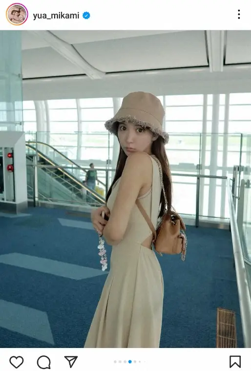 SKE48の元メンバーでタレントの三上悠亜(29)が13日、自身のインスタグラムなどを更新。“背中空きワンピ”姿を披露した。