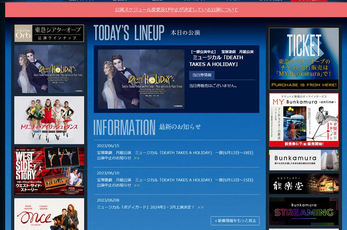 宝塚・月組の東急シアターオーブ公演が中止延長 15日までの予定が18日までに