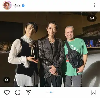 「初めて参加させて頂いたアイスショー、目の前で皆さんがパフォーマンスされる姿、本当に感動しっぱなしです」と書き出すと、共演したステファン・ランビエルさん、田中刑事さんとの2ショット、羽生さん、振付師のデビッド・ウィルソン氏との3ショットをアップ。「日々まさに、氷上で繰り広げられる魔法のような時を過ごさせて頂いております」と記した。