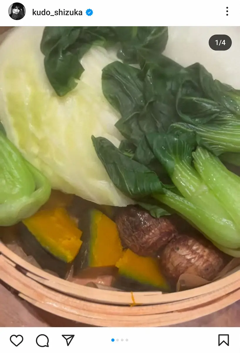 歌手の工藤静香(53)が18日、自身のインスタグラムを更新し、蒸籠蒸しの温野菜を披露した。