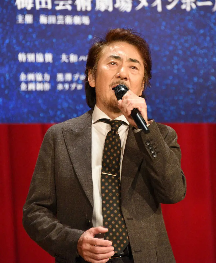 ミュージカル「生きる」の制作発表会見で歌唱した市村正親 (撮影・小田切 葉月)