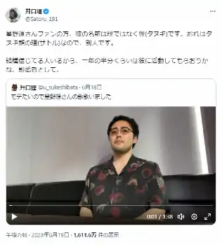 「井口理」ならぬ「升口狸」というアカウントが、「モテたいので星野源さんの歌歌いました」と動画をアップ。一瞬井口本人かと見間違えそうなほど激似ぶりが話題となり、これに井口が反応した。「星野源さんファンの方、彼の名前は理ではなく狸(タヌキ)です。おれはタヌキ顔の理(サトル)なので、別人です。結構信じてる人いるから、一年の半分くらいは彼に活動してもらおうかな。影武者として」とコメントした。