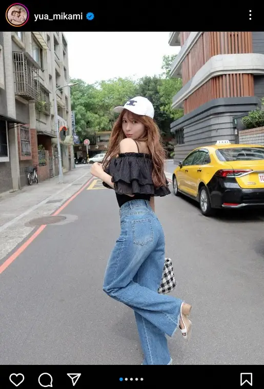 「台湾でお仕事した時のすっぴんぼさぼさでお散歩 トップスは25日発売です」とつづり、白いキャップに黒のトップス、デニムパンツ姿の写真をアップした。
