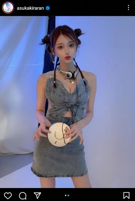 明日花キララ “穴あき”デニムワンピ姿披露に「ちょーかわいー」「かっこいいデニム」