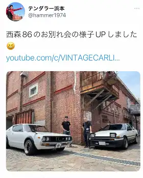 愛車“ケンメリ”の横で笑顔のテンダラー・浜本(左)、モンスターエンジン・西森(浜本広晃のツイッター@hammer1974より) テンダラー浜本、愛車は“ケンメリ” 価値高騰する旧車の魅力熱弁し、かま… ギャラリーで見る この記事のフォト 2023年06月22日の画像一覧 もっと見る 2023年06月22日の画像をもっと見る