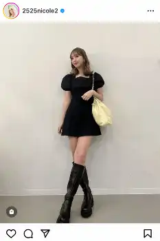 ニコルは「今日の私服」と黒のミニワンピに黒のロングブーツで“絶対領域”を披露したセクシーな姿を投稿。また「ミニワンピをなんだか着たい日」とし「たまにあるよね!ミニは恥ずかしくもなってきたけど、まだ着たい」とつづった。