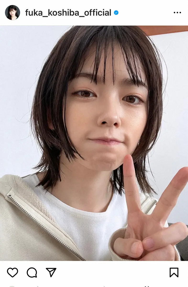 この日、2週間ぶりの投稿となった小芝は「ちょとお久しぶりになりました 黒髪になりもうして」とつづり、黒髪でピースする最新ショットをアップ。「撮影しております 今日も頑張るどっっ」とつづった。