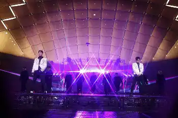 舞台に立つだけで、ドームを揺らす大歓声が起こった。ステージ上から2つの箱が降りてくる。そちらに視線が集まったが、ユンホ(37)とチャンミン(35)は下からせり上がって登場。いきなりファンを驚かせる演出が見事に成功し、満足げにほほ笑む2人。その姿に、多くのファンが熱狂した。ユンホは「ついてきてくれますか?」と聞き、チャンミンも「最高の1日にしましょう!」と会場をあおった。