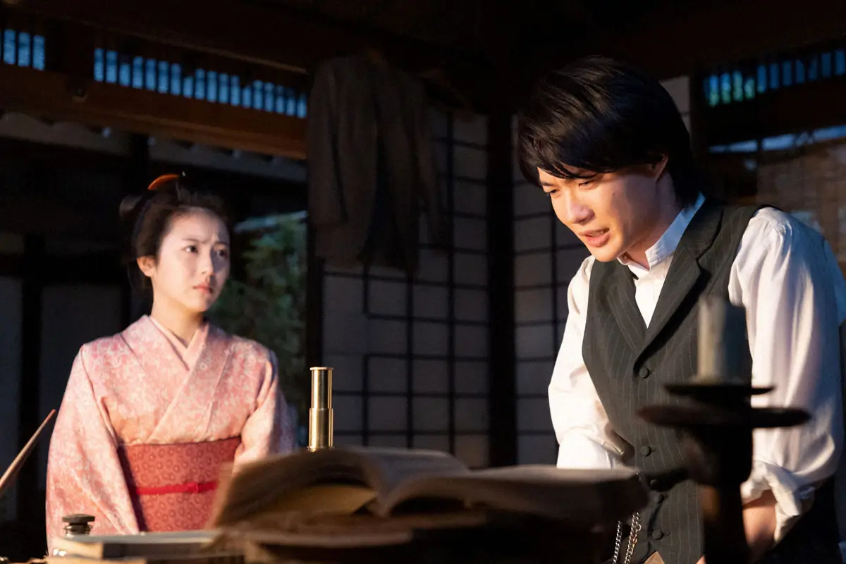 連続テレビ小説「らんまん」第62話。万太郎(神木隆之介)は寿恵子(浜辺美波)に… (C)NHK