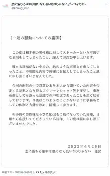 男性に1000万円貢がせた女性アイドル 所属事務所が被害男性への対応を謝罪「誤った認識だった」