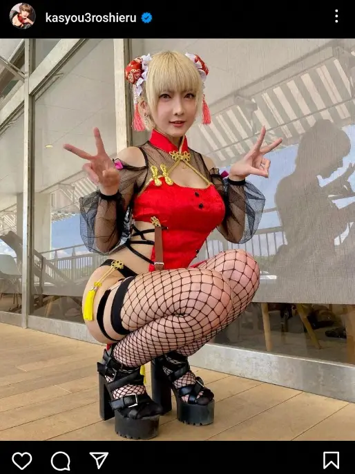 人気コスプレーヤーの火将(かしょう)ロシエル(年齢非公表)が28日までに自身のインスタグラムを更新。網タイツ・ショットを公開した。