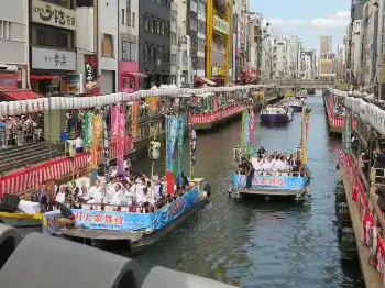 大阪松竹座100周年記念「7月大歌舞伎」(7月3~25日)に出演する人気歌舞伎俳優が29日、大阪・ミナミの道頓堀川で、ナニワの夏を彩る恒例行事「船乗り込み」を行った。