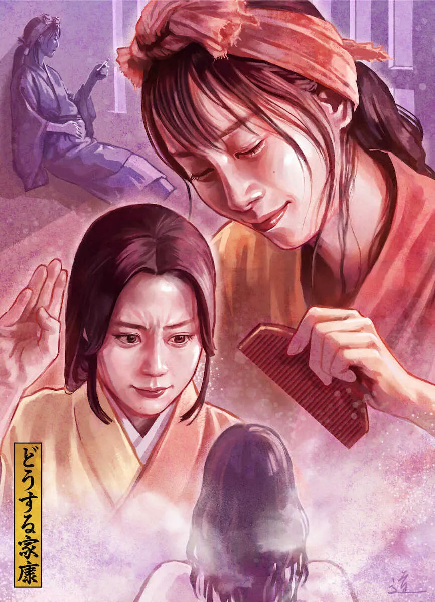 イラストレーターの石井道子氏が描いたNHK大河ドラマ「どうする家康」第19話大河絵 あざとい色香漂うお万と“直接対決”瀬名の笑顔の行方