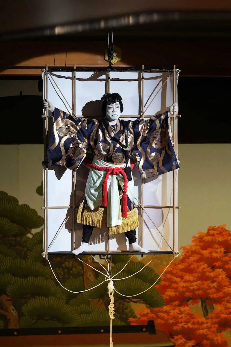 「風に任せて飛び向かわん」。物語のクライマックスで、大凧(おおだこ)に乗って宙を舞った。凧の綱を引くのは澤瀉屋を中心とした俳優たち。突然の事態で一門がピンチに陥った中、期待を一身に背負って飛び立った中車の目には、わずかに涙も浮かんでいた。