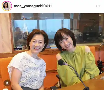 山口が月曜パーソナリティーを務めるNHKラジオ「ふんわり」にゲスト出演した森尾。「同じ事務所でありながら共演は今日が初めて」と、初共演記念のツーショットを投稿した。