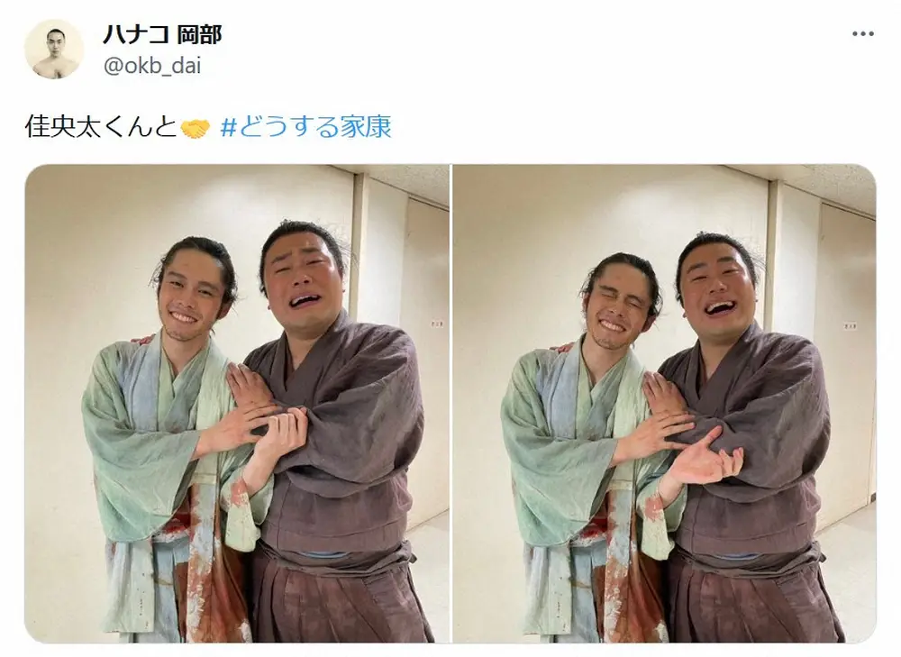 お笑いトリオ「ハナコ」の岡部大(34)が5日までに自身のツイッターを更新。NHK大河ドラマ「どうする家康」で共演した俳優の細田佳央太(21)との2ショットを披露した。