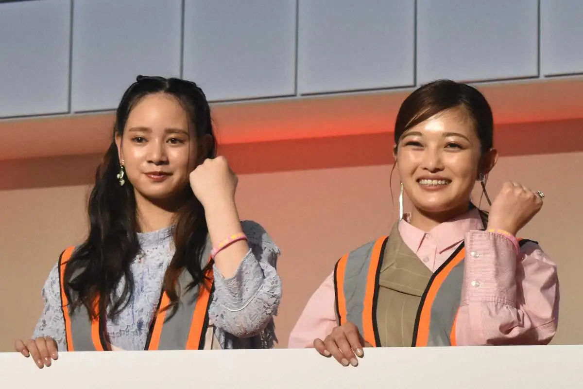 「工学院大学ソーラーチーム新車両発表会」に出席した井上咲楽(右)と宮城弥生(撮影・糸賀日向子)