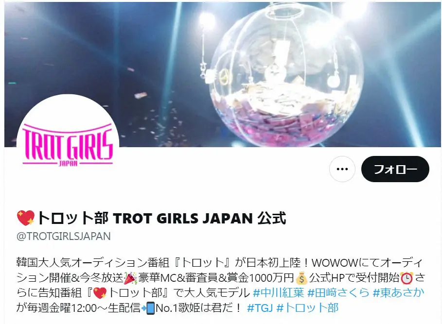 今冬に開催される新オーディション「トロット・ガールズ・ジャパン」のロゴ Photo by 提供写真 韓国で人気 日本版「トロット・ガールズ・ジャパン」今冬開催 7日から参… ギャラリーで見る この記事のフォト 2023年07月07日の画像一覧 もっと見る 2023年07月07日の画像をもっと見る