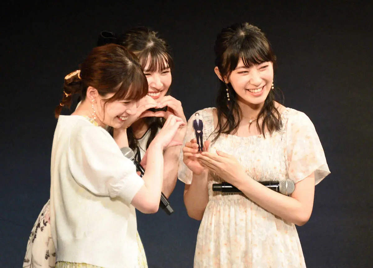 ウェザーニュースのファンミーティングに笑顔で登場した檜山沙耶(右)=撮影・小田切 葉月