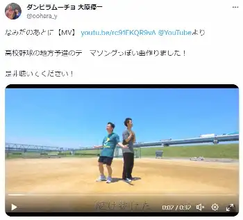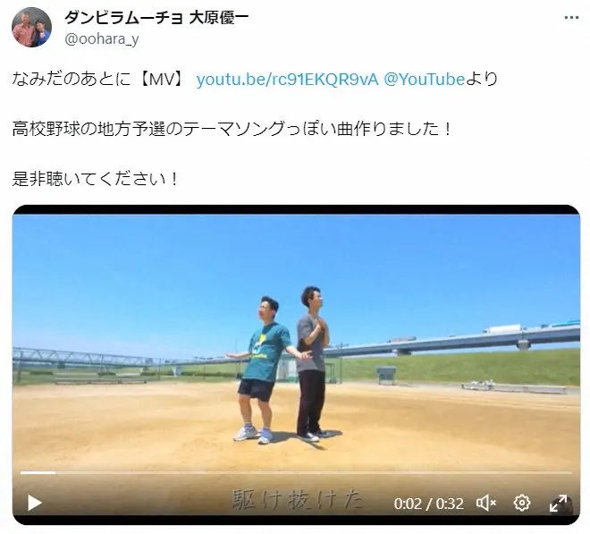 大原は「TRF」のモノマネユニット「イージードゥダンサーズ」のボーカルを担当している“歌うま芸人”でもあり、昨年7月に「高校野球の地方予選のテーマソングっぽい曲作りました!是非聴いてください!」とつづり、オリジナルソング「なみだのあとに」のMVを公開。さわやかな夏ソングで、ファンからは「めっちゃいい曲と歌声 泣きそう」「大原さんの歌声最高すぎます」「名曲」と、称賛する声が上がっていた。