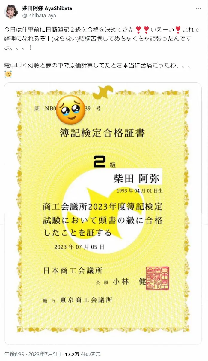 柴田阿弥 Photo by スポニチ 柴田阿弥 “その程度で”…簿記2級合格報告で寄せられる謎の批判「好きなよ… ギャラリーで見る この記事のフォト 2023年07月11日の画像一覧 もっと見る 2023年07月11日の画像をもっと見る