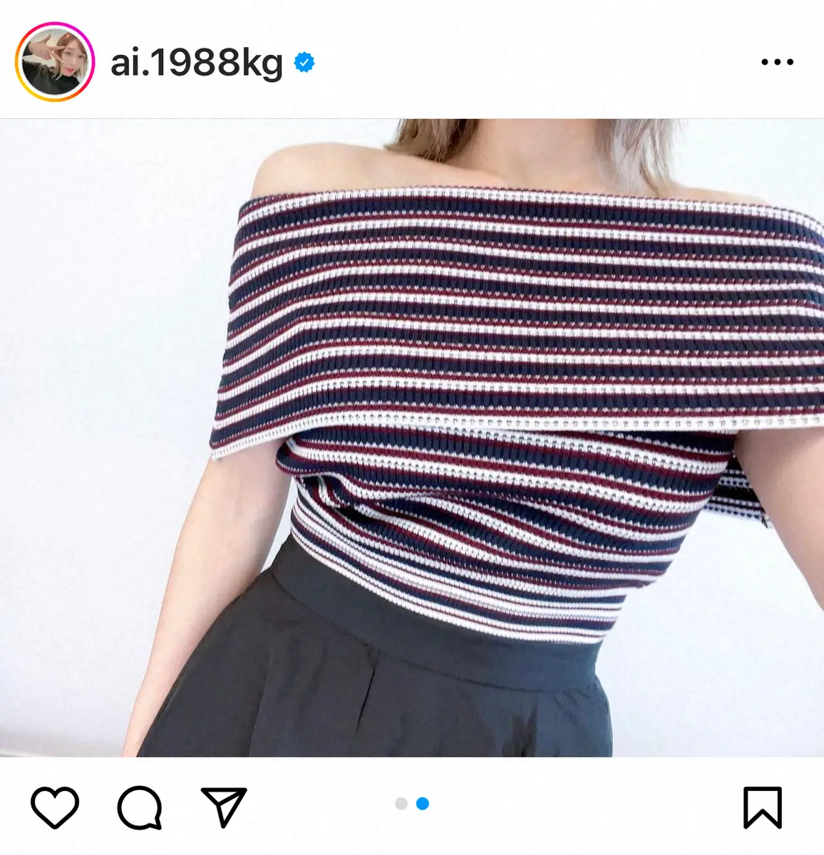 この投稿に、ファンからは「来世はこんな鎖骨がほしい」「カッコいい」「キレイ」「肩幅のバランス的に、オフショルより肩出しの方が可愛いかも」「これで肩幅広かったら世の中のみんなどーなんねん!笑」「めっちゃ似合ってる」「鎖骨出てるのいいやーん」「肩幅の広い女性ってめちゃくちゃタイプ。美しいと思います」などのコメントが寄せられている。