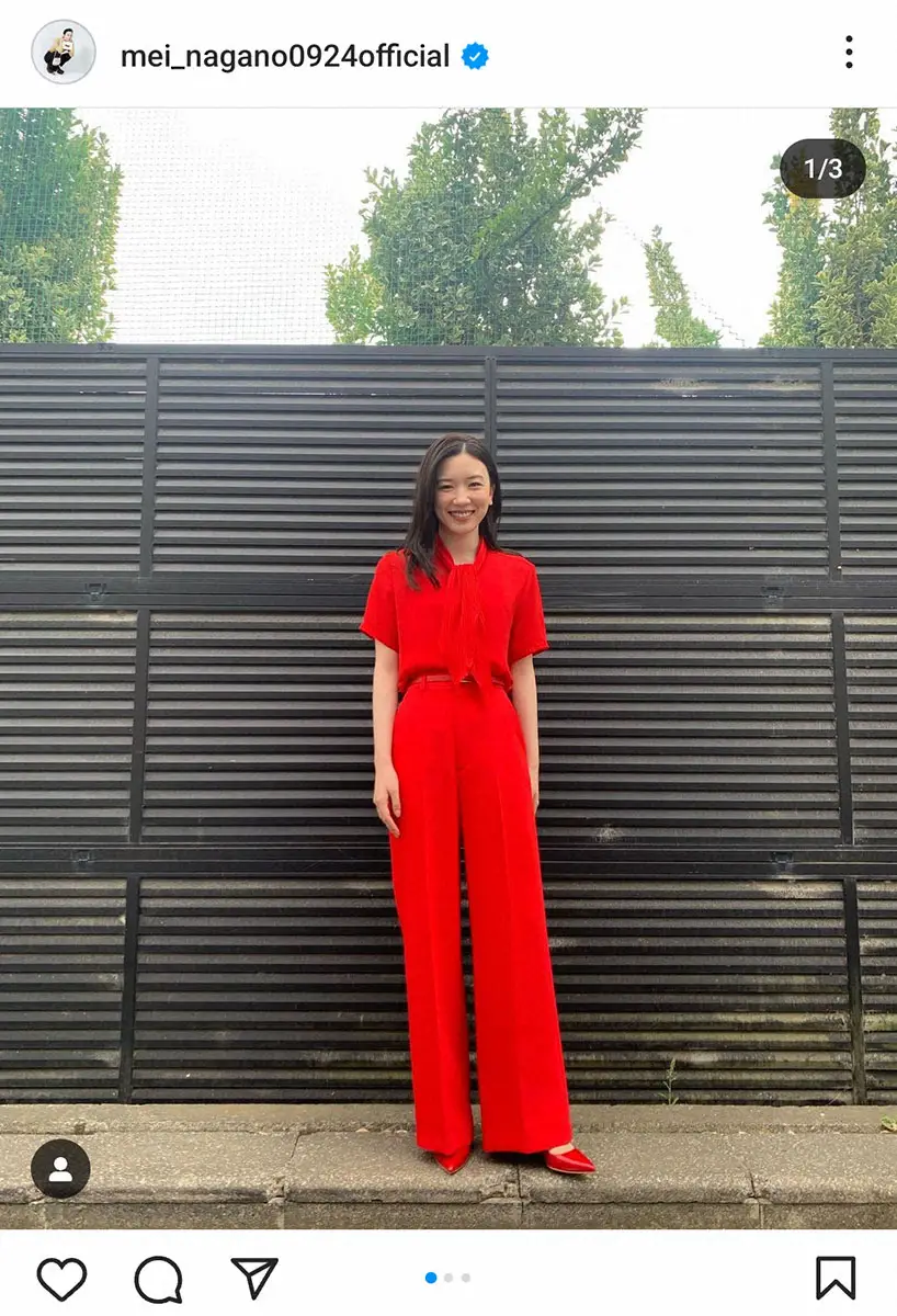 永野は「あついね~」とつづり、真っ赤なブラウス、パンツ、靴の姿で笑顔の写真などを投稿。