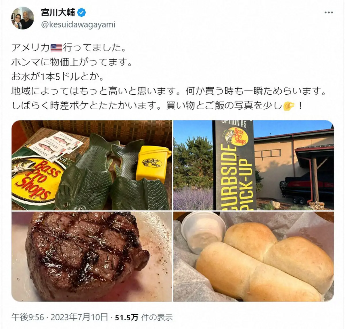宮川大輔 Photo by スポニチ 宮川大輔 米国での物価高騰に驚がく「お水が1本…」「何か買う時も一瞬た… ギャラリーで見る この記事のフォト 2023年07月12日の画像一覧 もっと見る 2023年07月12日の画像をもっと見る