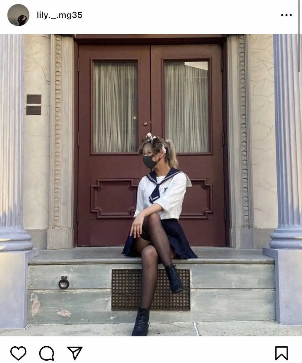 今回は「違うバージョンのユニバ」とし、制服姿で足を組む写真を投稿した。