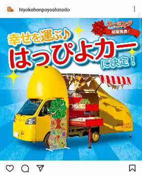 すると、多くのファンから「はっぴよカー」との声が寄せられた。同社の公式サイトによれば、ひよこ本舗吉野堂の「名菓ひよ子」の移動販売車で、22年2月にひよ子本舗吉野堂の創業125周年を記念して作られた「ひよ子」の形の「幸せを運ぶ♪はっぴよカー」と紹介されている。