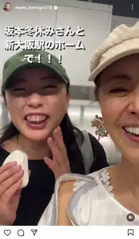 熊谷は13日、インスタグラムで「新大阪駅でばったり!後ろから声をかけてくださいました!」とものまねタレントの坂本冬休みに遭遇したことを報告していた。