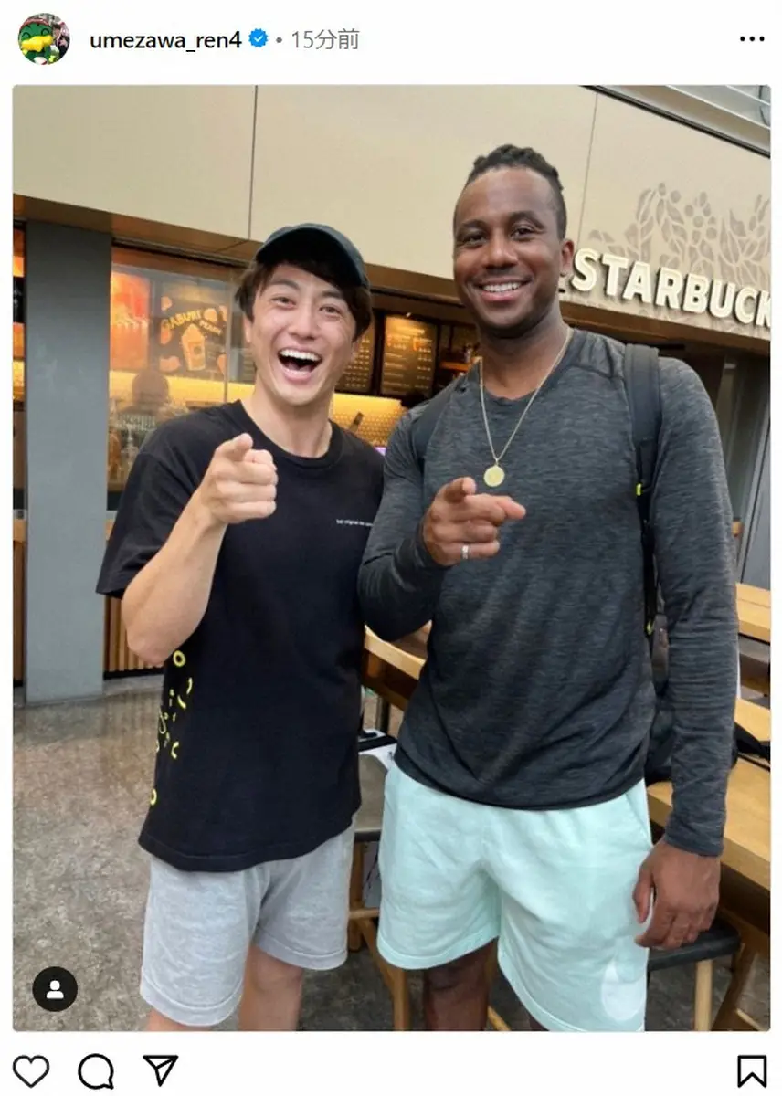 梅澤アナは「サプライズ!!!!!ブリンソンに偶然会うことができました!」とつづり、巨人のルイス・ブリンソン外野手とのツーショットをアップ。「彼は超クールで超フレンドリーだった!彼は親切にも私と一緒に写真も撮ってくれました」といい「彼の大ファンになった」と人柄に惚れ込んだことを記した。