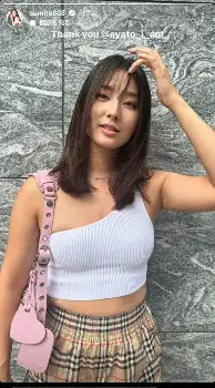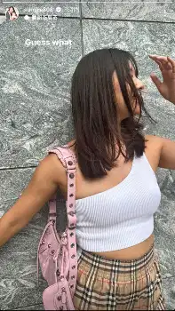 すみれは英語で「Guess what」(ちょっと聞いて)、「I got bangs」(前髪を作ったの)とつづり、ワンショルダーのタンクトップ姿の写真を投稿したもの。