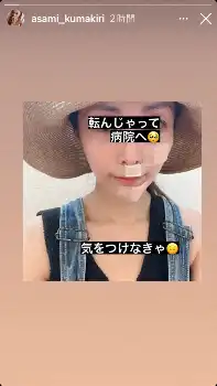タレントの熊切あさ美(42)が22日、自身のインスタグラムのストーリーズを更新。顔をけがした痛々しい姿を公開した。